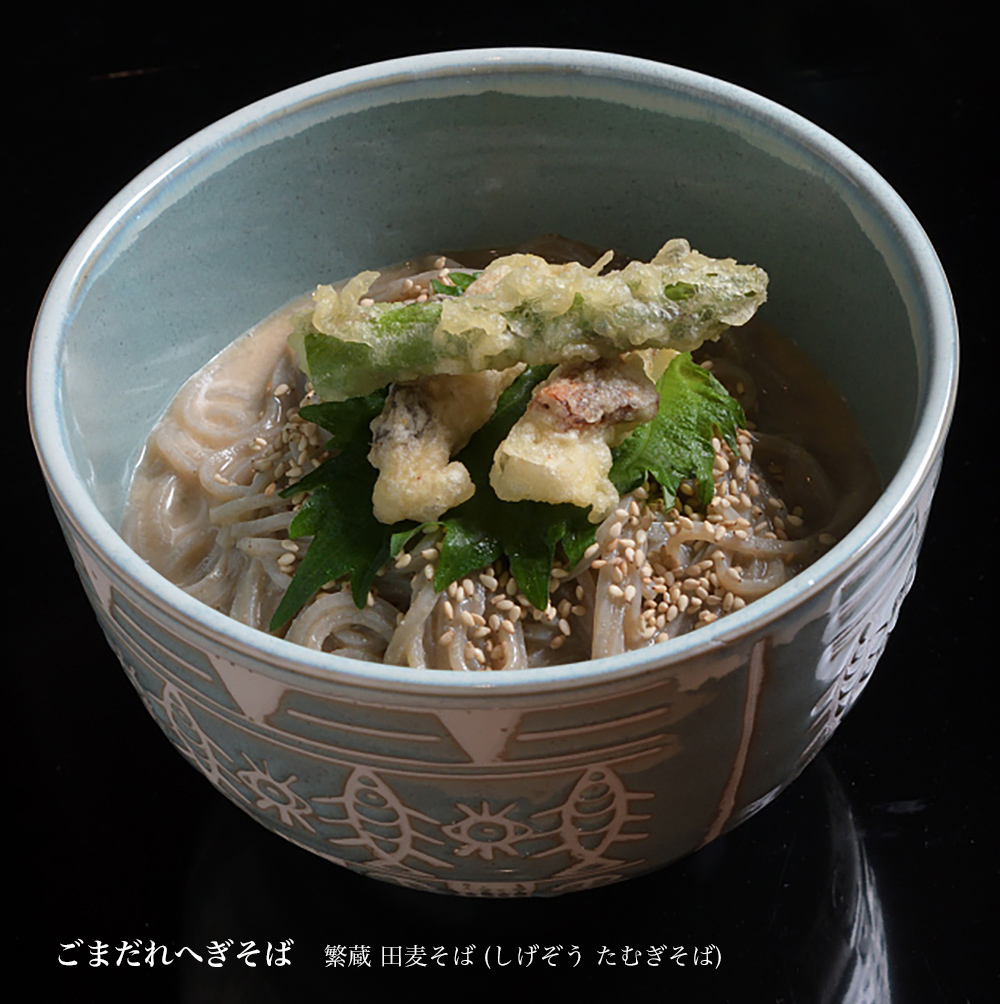 『繁蔵 田麦そば』(しげぞう たむぎそば)の、「ごまだれ へぎそば」の美味しさを体験してください。